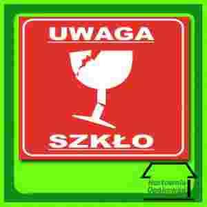 Etykiety samoprzylepne klejące UWAGA SZKŁO