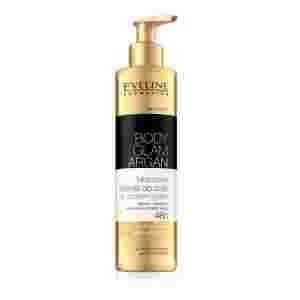 Arganowy balsam do ciała o jedwabistej konsystencji sprawia, że skóra staje się aksamitnie gładka i miękka w dotyku. Nowatorska formuła z olejkiem arganowym, kwasem hialuronowym i ekstraktem z czystego jedwabiu, wzbogacona o złocisty pył zmysłowo rozświetla skórę, pozostawiając ją pełną promiennego blasku. Doskonale nawilża, ujędrnia i poprawia elastyczność naskórka. Lekka formuła błyskawicznie się wchłania i nie pozostawia tłustej warstwy.