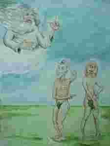 " Ewa - Koszmar Adama" satyra akwarela