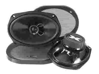 Naturalnie brzmiące 2-drożne samochodowe głośniki współosiowe o wymiarach wooferów 6x9 cali niemieckiej marki Excursion, wyposażone w dodatkowy system chłodzenia cewki oraz detalicznie brzmiące jedwabne kopułki wysokotonowe z rozpraszającymi dźwięk soczewkami akustycznymi SEL.
