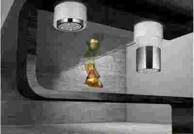 Czystość nad blatem kuchennym. Delikatne słoje, które przypominają obrazy pustynnych wydm na białym szkle okapu Vanilla. Lampa-okap, która zamyka funkcję wyciągu w czystym korpusie, dając klasyczny i elegancki efekt.