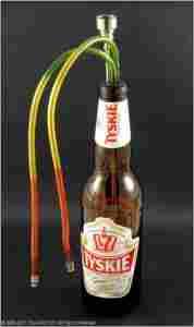 Teraz fajkę wodna bongo możemy zrobić z prawie każdej butelki czy to po coli, piwie czy z butelki plastikowej lub szklanej, dużej albo małej itp... itd... Ważne tylko aby szyjka butelki nie była za szeroka np. po Kubusiu, Frugo. Nalewamy butelkę wodą tak aby rurka była zanurzona w wodzie co najmniej parę centymetrów lub wodą z lodem dla przyjemniejszego efektu, wkładamy fajkę sprawdzając aby gumowa część dobrze była osadzona w szyjce i palimy. Palnik z wymiennym siteczkiem wykonany jest w całości z metalu i można go zdemontować w celu dokładnego oczyszczenia.