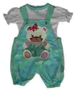REWELACYJNY, LETNI KOMPLECIK DZIEWCZĘCY. SPODENKI OGRODNICZKI ZE ŚCIĄGACZAMI I BLUZECZKA, KTÓRA NA PLECKACH PRZY DEKOLCIE JEST ROZPINANA CO UŁATWIA ZAKŁADANIE. UBRANKO OZDABIA WESOŁA KOLOROWA APLIKACJA.