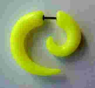 Przedmiotem sprzedaży jest akrylowy fake-plug (oszukana spirala) koloru żółtego. Wielkość 27mm/ 30mm. Zapięcie wykonane ze stali chirurgicznej 316 L (nieuczulające). Grubość pręta przechodzacego przez ucho - 1mm, długośc ok 5mm. Doskonale imituje rozpychacz grubości 6mm.