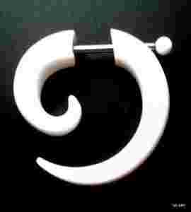 Przedmiotem sprzedaży jest fake-plug (oszukana spirala) koloru białego, wykonany z akrylu. Wielkość 30mm/ 30mm. Zapięcie wykonane ze stali chirurgicznej 316 L (nieuczulające), grubość pręta przechodzącego przez ucho 1mm. Doskonale imituje rozpychacz grubości 6mm.
