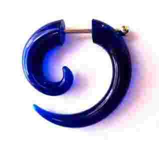 Przedmiotem sprzedaży jest fake-plug (oszukana spirala) koloru ciemnoniebiskiego, wykonany z akrylu. Wielkość 29mm/ 29mm. Zapięcie wykonane ze stali chirurgicznej 316 L (nieuczulające). Doskonale imituje rozpychacz grubości 6mm.