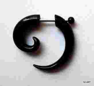 Przedmiotem sprzedaży jest fake-plug (oszukana spirala) koloru czarnego, wykonana z akrylu. Wielkość 25mm/ 25mm. Zapięcie wykonane ze stali chirurgicznej 316 L (nieuczulające), grubość pręcika 1mm. Doskonale imituje rozpychacz grubości 5mm. Kupując na aukcji jedną sztukę, otrzymujesz jeden fake plug.