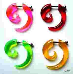Przedmiotem sprzedaży jest fake-plug (oszukana spirala), wykonany z akrylu. Do wyboru 4 kolory: czerwony, zielony, żółty, różówy. Wielkość - 25mm/ 25mm. Zapięcie wykonane ze stali chirurgicznej 316 L (nieuczulające). Grubość pręcika przechodzącego przez ucho - 1mm. Doskonale imituje rozpychacz grubości 5mm. Podana cena dotyczy zakupu jednej sztuki.