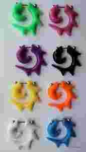 Przedmiotem sprzedaży jest fake-plug (oszukana spirala) grubości 8mm, dostępna w 7 kolorach: zielony, fuksja, fioletowy, żółty, pomarańczowy, biały, jasnoniebieski. Wielkość 35mm/ 36mm. Zapięcie wykonane ze stali chirurgicznej 316 L (nieuczulające). imituje rozpychacz grubości 8mm. Grubość pręta przechodzącego przez ucho 1mm.
