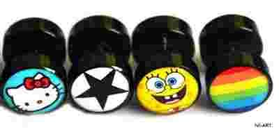fake-plug- 10mm 4 wzory : kotek, czarna gwiazda, spongebob, tęczowy ,