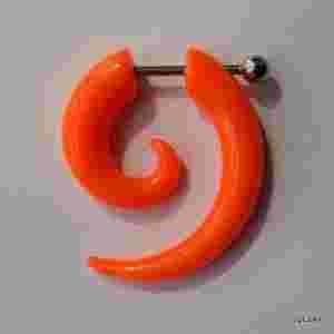 Przedmiotem sprzedaży jest fake-plug (oszukana spirala) koloru pomaranczowego, wykonana z akrylu. Wielkość 25mm/ 22mm. Zapięcie wykonane ze stali chirurgicznej 316 L (nieuczulające). Grubość pręta przechodzącego przez ucho - 1mm. Doskonale imituje rozpychacz grubości 5mm.
