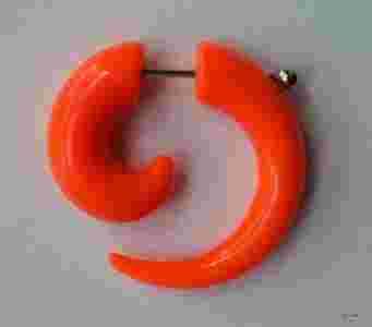 Przedmiotem sprzedaży jest fake-plug (oszukana spirala) koloru pomarańczowego. Wielkość 30mm/ 35mm. Zapięcie wykonane ze stali chirurgicznej 316 L (nieuczulające). Doskonale imituje rozpychacz grubości 8mm. Grubość pręta przechodzącego przez ucho 1mm.
