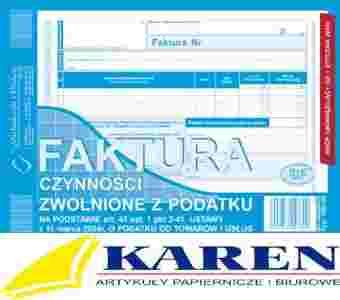FAKTURA CZYNNOŚCI ZWOLNIONE Z PODATKU A5 198-3E