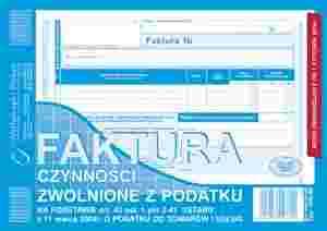 Faktura czynności zwolnionej z podatku A5 198-3E