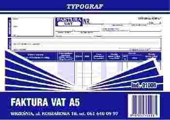FAKTURA VAT A5 wielokopia. DRUK samokopiujący. FV
