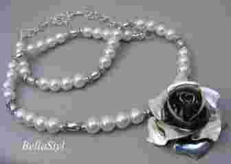 Fantastyczny naszyjnik PERŁY róża wisior