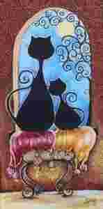 FANTAZYJNE CZARNE KOTY 2 - OBRAZ 30x60 Akryl
