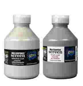 Do prawidłowego wykonania profesjonalnego ekranu Screen Goo w oparciu o typ Max Contrast, należy użyć 2 typów farb: farby podkładowej (Reflective Coat) i farby właściwej (Finish Coat). Przy użyciu tych 2 farb ekran uzyska swoje właściwości. Farba Max Contrast odpowiada wysokiej jakości ekranom o powierzchni szarej.