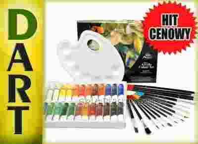 FARBY AKRYLOWE 24 x 12 ml + PEDZLE 15szt + PALETA