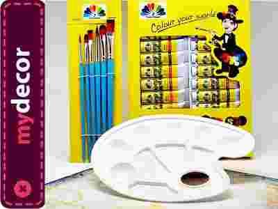 FARBY AKRYLOWE 24x12ml+Pędzle syntet 6 szt.+Paleta