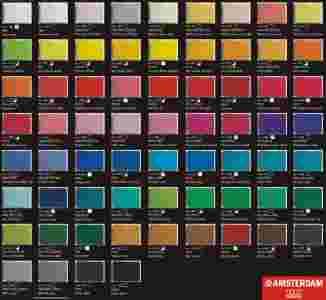 Farby akrylowe Amsterdam należą do bardzo uniwersalnych farb o najwyższej jakości. Przeznaczone są zarówno dla tych, którzy zużywają duże ilości farby akrylowej jak i dla tych, którzy poszukują farb do celów edukacyjnych. Występują one w bogatej ofercie transparentnych i dobrze kryjących kolorów. Niewątpliwą ich zaletą jest to, że użyte do ich produkcji pigmenty nie zawierają szkodliwych metali ciężkich. Zastosowanie w nich najlepszej jakości pigmentów gwarantuje, że wszystkie kolory cechują się najwyższą odpornością na działanie światła. Farby akrylowe Amsterdam charakteryzują się bardzo wytrzymałą powłoką, zawdzięczają to substancji wiążącej w czystej postaci żywicy akrylowej użytej przy ich produkcji. Jest to bardzo ważne na przykład w przypadku malarstwa ściennego. Farby Amsterdam są odporne na działanie alkaliów, co gwarantuje że prace będą trwałe przez lata.