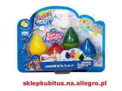 W zestawie 4 pojemniki z farbkami do malowania w kąpieli.
