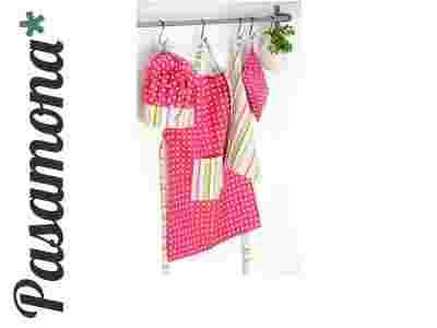 Bajecznie kolorowy, pełen wdzięku i uroku zestaw kuchenny dla małej Gospodyni w wieku 3- 7 lat, pochodzący z australijskiej marki Ladelle. Wykonany z tkaniny w różowe kropeczki, zestawionej z paseczkami, komplet w postaci fartuszka, czapki kucharskiej , ściereczki i kosmetyczki wprowadzi w zachwyt każdą dziewczynkę. Może służyć do wspólnego gotowania z rodzicami, pomocy w porządkach, a także zabawie z farbami.