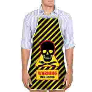 - kuchenny fartuszek dla mężczyzny - dowcipny design ze znakiem ostrzegawczym i czaszką - napis: „WARNING Man cooking” - rozmiar uniwersalny - praktyczny i zabawny prezent dla faceta
