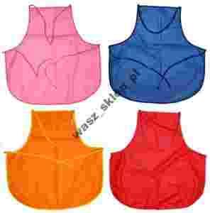 Uszyty z tasiemką do przełozenia przez głowę, wiązany w pasie na plecach. Wykonany z miekkiego, lekko elastycznego materiału jednostronnie odpornego na zabrudzenia, łatwy do wytarcia, trwały (to nie zwykła ceratka, a wysokiej jakość materiał -włókna stretch pokryte poliuretanowa powłoką , nie zawierający PCV). Można prać w pralce.