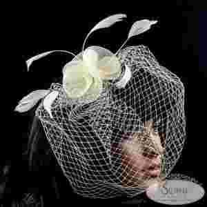 Fascynator, stroik do włosów ślubny - jasny beż