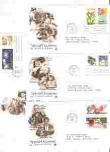 FDC USA 4 koperty 1987r. jak na skanie. UWAGA: ZE WZGLĘDU NA PODESZŁY WIEK I INWALIDZKI STAN ZDROWIA (I Gr. Inwalidzka) WYPRZEDAJĘ NA ALLEGRO SWOJE RODZINNE ZBIORY KOLEKCJONERSKIE, KTÓRE GROMADZIŁEM PRZEZ OKOŁO 60 LAT: 1) FILATELISTYKA W SZEROKIM ZAKRESIE RODZAJOWYM I TEMATYCZNYM (znaczki, FDC, karty pocztowe, revenue, spec. ostemplowania, koperty z obiegu pocztowego i inne) 2) RÓŻNEGO RODZAJU STARE DOKUMENTY: SĄDOWE, NOTARIALNE, PARAFIALNE, GMINNE, MAGISTRACKIE, FIRMOWE (listy i pisma), LEGITYMACJE, DOWODY OSOBISTE, PASZPORTY, KARTKI ŻYWNOŚCIOWE, WIDOKÓWKI, ZDJĘCIA, AKCJE, OBLIGACJE, POLISY, STARE BANKNOTY I INNE. PRAWIE CODZIENNIE DOSTAWIAM W ALLEGRO KOLEJNE WALORY KOLEKCJONERSKIE na loginach: BEZ1 i majela06 PRZY ZAKUPIE WALORÓW W KILKU AUKCJACH- WYSYŁKA WSPÓLNA ZA JEDNYM KOSZTEM PORTO. Wysyłki listem zwykłym niepoleconym na ryzyko KUPUJĄCEGO. Przesyłki krajowe o zawartości do 110zł list polecony, natomiast o zawartości powyżej 110 zł do uzgodnienia np. list wartościowy. Przesyłki zagraniczne wysokość porto do uzgodnienia. ZA ZAKUPIONE PRZEDMIOTY PROSZĘ WPŁACAĆ BEZPOŚREDNIO NA MOJE KONTO BANKOWE PODANE W ALLEGRO BEZ POŚREDNICTWA PayU. BĘDZIE PEWNIEJ I SZYBCIEJ. Posiadam też konto bankowe PayPal.