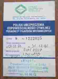 FIAT 125P - POLISA UBEZPIECZENIOWA