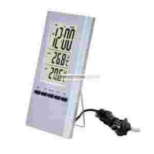 Wysokej jakości cyfrowa stacja pogodowa. Oferuje: termometr elektroniczny dwufunkcyjny, funkcję alarmu temperatury, zegar z alarmem, historię odczytów. Nadaje się do montażu na oknie. zawiera estetycznie wykonany precyzyjny termometr z czujnikami wewnętrznym i zewnętrznym (1,5m kabla).