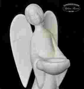 Figurka ANIOŁ ZADUMANY swiecznik ceramika biskwit