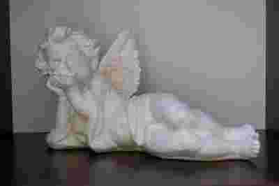 Mamy przyjemność zaoferować Państwu wspaniałą, stylową figurkę aniołka w pozycji leżącej. Figurka pięknie prezentuje się w salonie jak również w pokoju dziecka. Została wykonana z tworzywa sztucznego, imitującego gips.