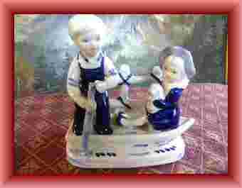Figurka dziewczynki z chłopcem na łodzi