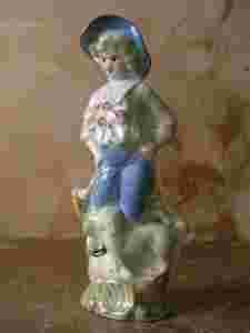 Figurka kobieta z psem opalizująca porcelana