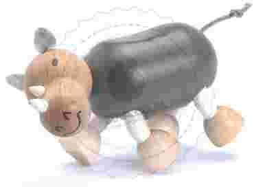 Zabawka drewniana wykonana z drewna klonowego. Zwierzątko można ustawiać w dowolnych pozycjach.Nosorożec z elastycznymi nóżkami.