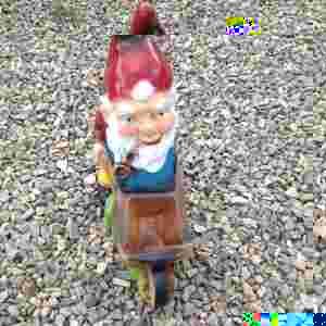 FIGURKA OGRODOWA - KRASNOLUDEK Z TACZKĄ