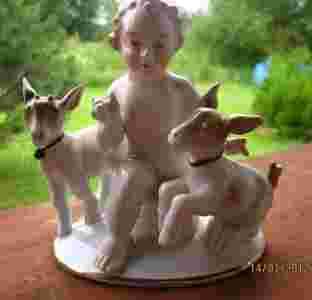 Figurka Putto i dwa koziołki Gerold CO Tettau