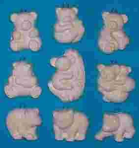 FIGURKI GIPSOWE małe misie 9 sztuk