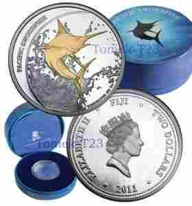 Fiji $2 Pacific Swordfish Miecznik - pozłacana
