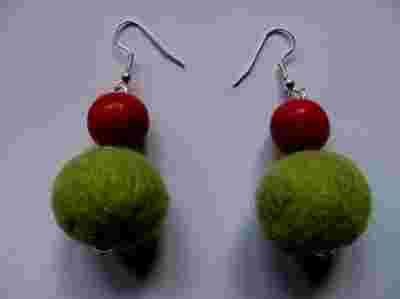 Filcowe kolczyki. Czerwień z zielenią.