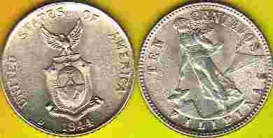 FILIPINY 10 Centavos 1944 r. Ag