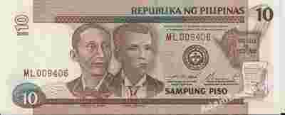 FILIPINY 10 PISO 2000 P-187f UNC.
