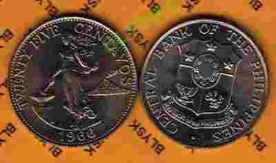 FILIPINY /KM-189.1/ 25 CENTAVOS 1966 r. Stan I/-I