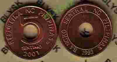 FILIPINY /KM-268/ 5 SENTIMOS 2001 r. Z otworem