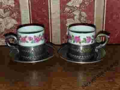 Filizanki do mokki w cynowych koszyczkach 2 szt
