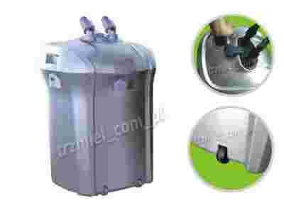 Filtr zewnętrzny kubełkowy o nowoczesnym, eleganckim wyglądzie i bardzo solidnej konstrukcji. Bardzo duża objętość filtracyjna, wysoka wydajność 2400 l/h oraz właściwie skomponowane media filtracyjne, gwarantują skuteczną, wielostopniową, bardzo dokładną filtrację, zapewniając krystalicznie czystą wodę w każdym akwarium do 1000 l. Filtr zewnętrzny kubełkowy, posiada wyjmowane kosze