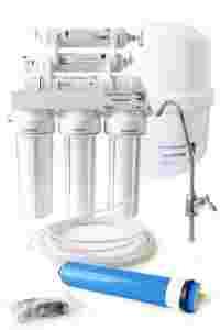 Etap IV (filtracja osmotyczna z udziałem membrany osmotycznej) - membrana osmotyczna składa się z wielu warstw nawiniętych na perforowany trzpień umieszczony wewnątrz membrany. Zanieczyszczona woda wtłaczana jest pod ciśnieniem na powierzchnie membrany, gdzie cząstki wody przenikają przez mikroskopijne pory membrany. Membrana osmotyczna zatrzymuje od 96 do 99 proc. rozpuszczonych w wodzie zanieczyszczeń organicznych i nieorganicznych, metali ciężkich oraz niektórych bakterii i wirusów nie mniejszych niż 0,001 um. Zanieczyszczenia zostają wydzielone i odrzucone do odpływu. idealnie oczyszczona woda przedostaje się przez otwory do centralnego trzpienia i pod wpływem ciśnienia wypływa z membrany.